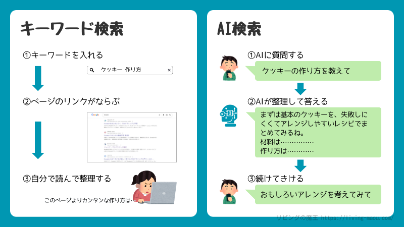 検索けんさくは「自分じぶんさがすもの」から、「AIにはなしかけておしえてもらうもの」へと進化しんかしているのです。