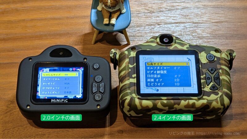 他のキッズカメラの多くは2.0インチですが、ピントキッズは2.4インチとひと回り大きな画面を採用。目にやさしく、撮った写真もすぐ見返せます。