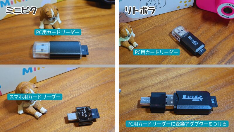 - リトポラ :PC用カードリーダーとスマホ用アダプターが付属
