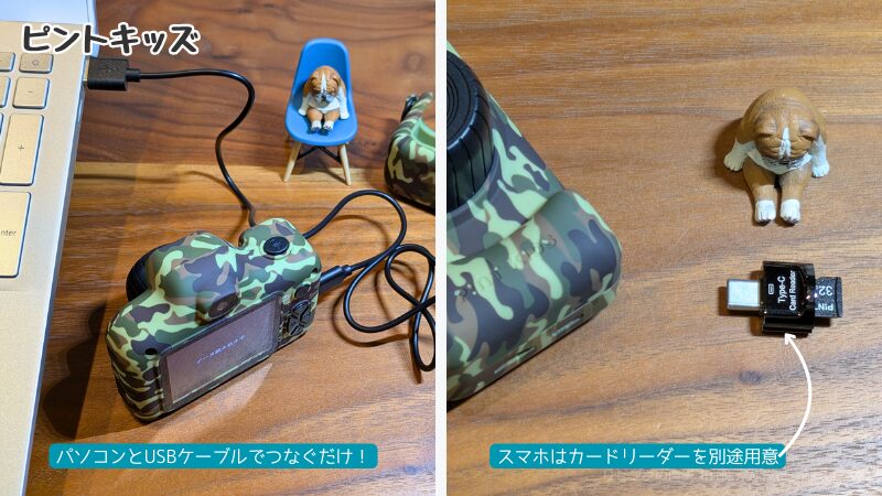 - パソコンに転送 → USB接続で済むピントキッズが楽