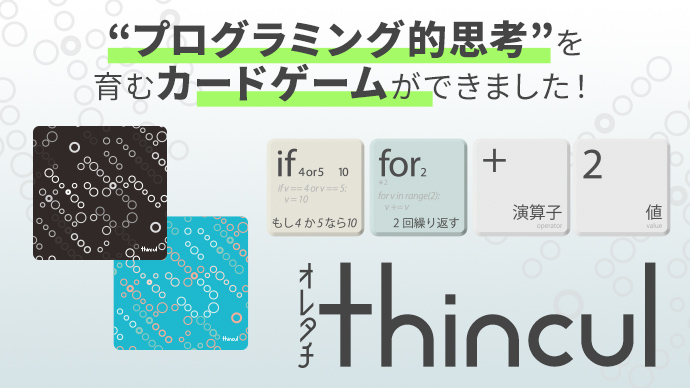 オレタチthincul(シンカル)は、遊びながらプログラミング的思考を育めるカードゲームです。